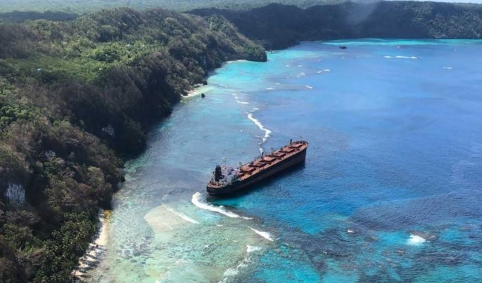 April 18, 2019For over a month, a cargo ship has been leaking heavy fuel oil into the waters of Rennell Island’s Kangava Bay in the South Pacific, home of the world’s largest raised coral atoll and a UNESCO World Heritage site. The oil spill from the ship Solomon Trader, a Hong-Kong registered bulk-carrier which was loading Bauxite at Lughu Bay in West Rennell, has released 80 tonnes of oil into the sea, but 650 tonnes remain aboard.